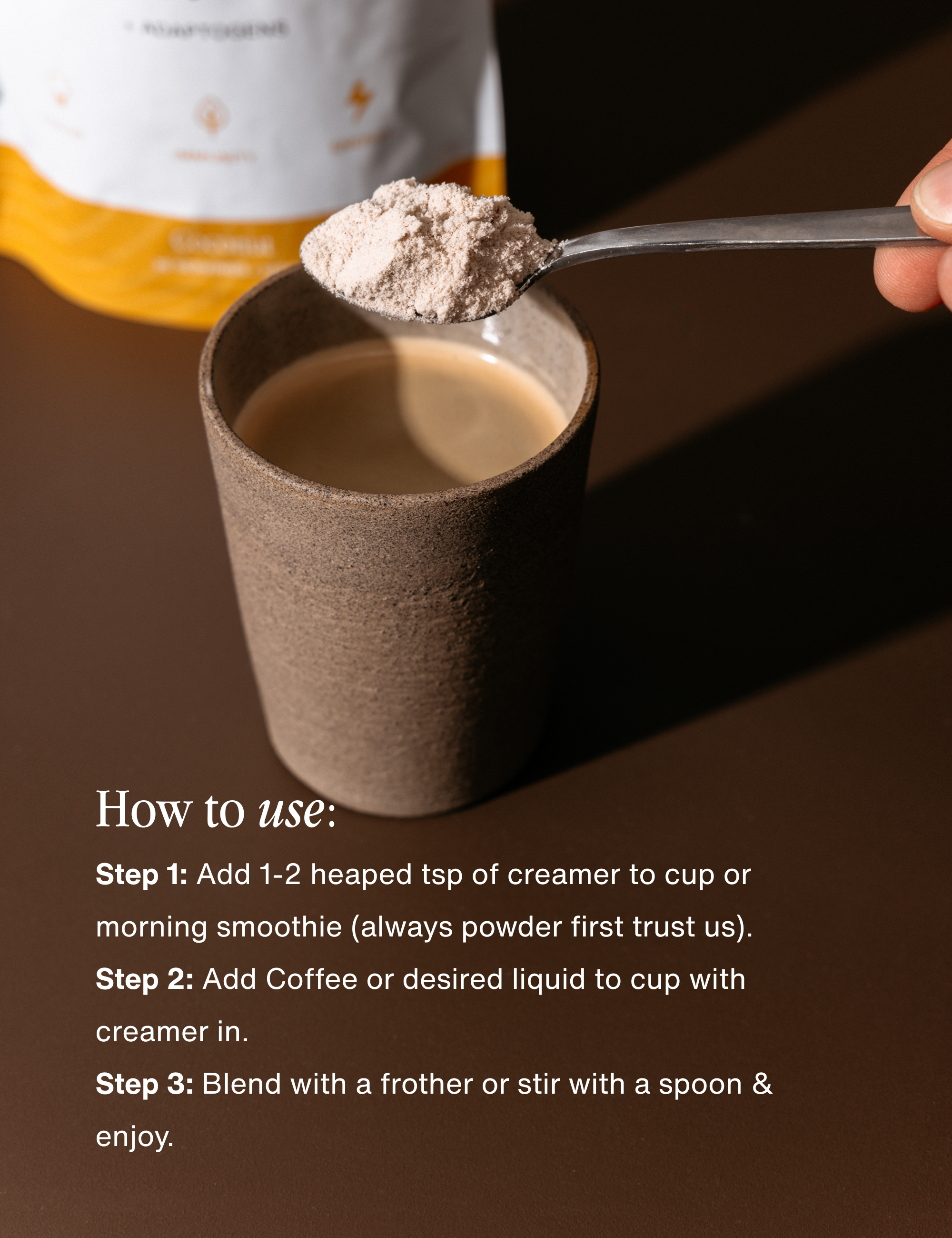 Step 1: Add 1-2 heaped tsp of creamer to cup